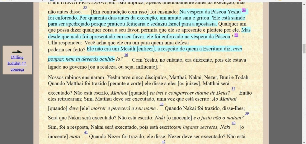 Foto do Tratado de Sanhedrin 43 a extraído do Talmud online inglês traduzido para o português.